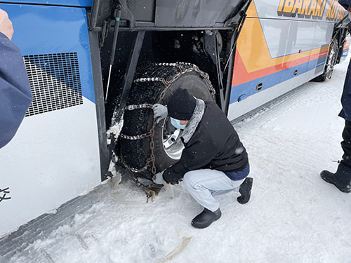 茨城県は雪に慣れていない地域ですので、雪道での安全確保のための研修会は重要です。雪道研修会に参加し、実際に雪道での訓練も行いました。