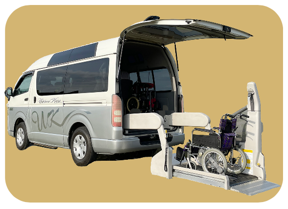 介護を必要とする人が病院への送迎、買い物、墓参り、外食など生活の質の向上にお役にたてます。